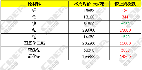 四氧化三鈷本周表現(xiàn)較強(qiáng)勢(shì),廠家仍在不斷上調(diào)價(jià)格,但下游接單意愿不是很強(qiáng),部分廠家仍持觀望態(tài)度。目前,四氧化三鈷價(jià)格在20.2-21萬元/噸,均價(jià)較上周上漲1.1萬元/噸。氧化鈷廠家表示近期原料供應(yīng)緊張,市場(chǎng)多處于滿產(chǎn)狀態(tài),廠家報(bào)價(jià)上調(diào),市場(chǎng)出貨意愿不強(qiáng)。目前,氧化鈷報(bào)價(jià)在19.5-19.8萬元/噸,均價(jià)較上周上漲1.43萬元/噸。市場(chǎng)預(yù)期短時(shí)間內(nèi)仍處于漲勢(shì)。