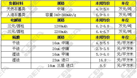 本周負(fù)極材料市場(chǎng)繼續(xù)保持平穩(wěn)運(yùn)行。目前低端負(fù)極材料主流報(bào)價(jià)1.8-2.2萬元/噸,中端產(chǎn)品主流報(bào)價(jià)4-5.5萬元/噸,高端產(chǎn)品主流報(bào)價(jià)8-10萬元/噸;受電芯廠春節(jié)前停產(chǎn)整修的影響,市場(chǎng)出貨量略有減少。