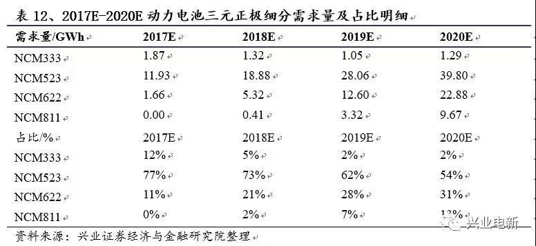 政策導(dǎo)向、市場需求促進(jìn)高鎳三元路線,成本及性能雙優(yōu)勢NCM523電芯將進(jìn)一步取代NCM333電芯,高鎳NCM622/811的應(yīng)用也將隨著上游正極的產(chǎn)能釋放與下游需求的上升而加速提升。