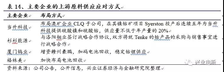 投資建議:動(dòng)力電池板塊看好擁有產(chǎn)能市占率優(yōu)勢同時(shí)技術(shù)布局領(lǐng)先的企業(yè),上游環(huán)節(jié),鈷、鋰;電池環(huán)節(jié):國軒高科;中游環(huán)節(jié)隔膜:創(chuàng)新股份;正極負(fù)極:杉杉股份,璞泰來;電解液:天賜材料(化工覆蓋)。電機(jī)電控:匯川技術(shù)。