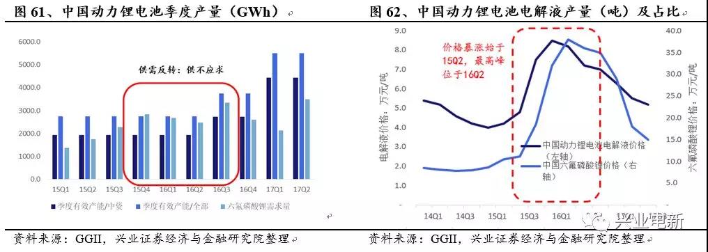 2015年Q2的新能源車市場啟動(dòng)快速拉動(dòng)了電解液市場的需求上漲。由于LiPF6廠商的準(zhǔn)備不足,原先的產(chǎn)能足以匹配原先的需求但面對快速新增的需求無法全面滿足,供不應(yīng)求下LiPF6的價(jià)格開始階躍式暴漲。