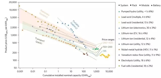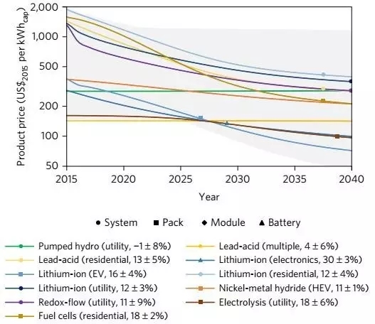 O. Schmidt et al. The future cost of electrical energy storage based on experience rates. Nature Energy 2017, 2, 17110.