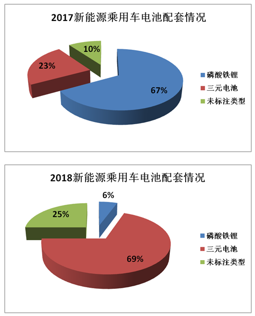 2018年1月16日,工業(yè)和信息化部公示的首批申報《道路機動車輛生產(chǎn)企業(yè)及產(chǎn)品公告》新產(chǎn)品,這也是今年的首批入圍名單。在2018年首批公示的36款新能源乘用車配套電池類型中,三元鋰電池25款,占比達69%,相比2017年增加了46%。