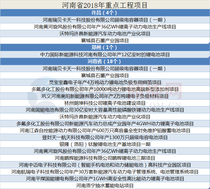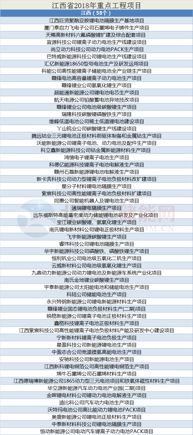 中國(guó)儲(chǔ)能網(wǎng)訊:據(jù)悉,最近一段時(shí)間多個(gè)省份陸續(xù)公布《2018年重點(diǎn)工程項(xiàng)目建設(shè)名單》,截止小編發(fā)稿前,公布省級(jí)建設(shè)項(xiàng)目名單的有:山東、江蘇、甘肅、湖北、廣東、江西、山西、河北、河南、福建、貴州共11個(gè)省份,小編為大家整理了各省份重點(diǎn)項(xiàng)目名單中涉及儲(chǔ)能的項(xiàng)目,共涉及儲(chǔ)能項(xiàng)目202個(gè)。
