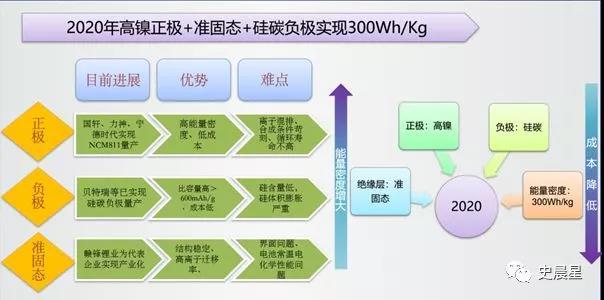 1.2020年高鎳正極+準(zhǔn)固態(tài)電解質(zhì)+硅碳負(fù)極實(shí)現(xiàn)300Wh/Kg