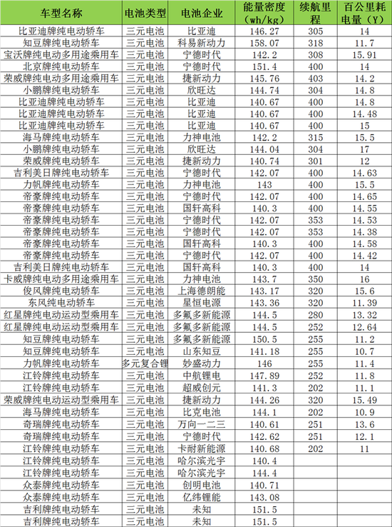 高工鋰電通過梳理已經(jīng)進入2017前12批和2018年第1批《新能源汽車推廣應(yīng)用推薦車型目錄》發(fā)現(xiàn),在600多款純電動乘用車車型用,配套系統(tǒng)能量密度超過140Wh/kg的車型只有40余款,近20家電池企業(yè)提供配套。