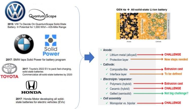 前段時(shí)間,大眾宣布向QuantumScape投資約1億美元,目標(biāo)是在2025年研發(fā)并擁有可量產(chǎn)的固態(tài)電池。大眾從很多年前開始關(guān)注QuantumScape,2014年12月已持有后者5%的股權(quán),如今的1億美元為新增投資,這也說明大眾對(duì)于后者的技術(shù)實(shí)現(xiàn)可能性較為確定。在日本,日本政府、日本電池制造商及本田、日產(chǎn)和豐田三大主要汽車制造商將聯(lián)合研發(fā)固態(tài)鋰離子電池。但是根據(jù)幾位大佬的表態(tài)來看,時(shí)間節(jié)點(diǎn)要在2025年后了。