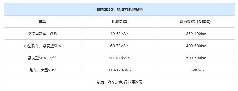 目前主流的電池系統(tǒng)能量密度在140kWh/kg-160kWh/kg之間,續(xù)航里程設(shè)計(jì)已經(jīng)普遍達(dá)到350-400Km。 國內(nèi)高端電動(dòng)車型的規(guī)劃是在2020年左右,通過電芯設(shè)計(jì)的優(yōu)化,往上把續(xù)航里程提高到500Km。目前來看國外的大眾MEB平臺(tái)、寶馬的iNext系列和奔馳的EQ系列都是規(guī)劃了不同的能量密度,通過控制總的電池裝載量來選擇。