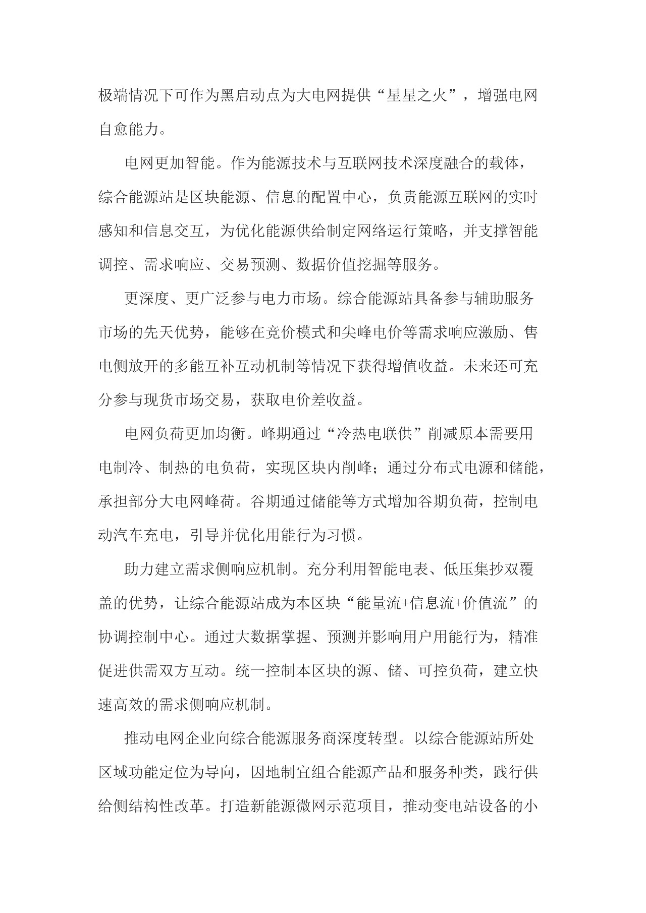 中國儲能網(wǎng)訊:從本質(zhì)上講出了綜合能源站的框架,即綜合供能,以變電站為載體,構(gòu)建以電為中心的集成系統(tǒng),打造綜合供能體,在一定范圍內(nèi)實現(xiàn)能源的產(chǎn)銷平衡,滿足終端用戶的多種使用需求。具體則以常規(guī)變電站為載體,供電、分布式光伏和燃?xì)馊?lián)供、儲能、充電樁裝置等??陀^講,這也將引領(lǐng)電網(wǎng)企業(yè)將來的運作模式之一。