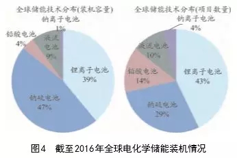 鈉硫電池是目前累計(jì)裝機(jī)量最大的電化學(xué)儲(chǔ)能技術(shù),占有47%的份額(截至2016年8月,如圖4所示),鋰離子電池則是應(yīng)用領(lǐng)域最廣的儲(chǔ)能技術(shù),項(xiàng)目數(shù)量占到42%,未來鋰離子電池儲(chǔ)能將繼續(xù)快速增長(zhǎng)。
