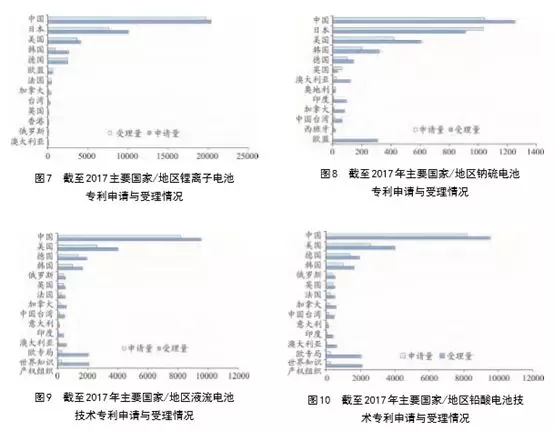 3.我國(guó)在鋰離子電池、液流電池領(lǐng)域的專利申請(qǐng)量排名全球首位,且鋰離子電池專利數(shù)量大幅度領(lǐng)先,但在鈉硫電池、鉛酸電池領(lǐng)域與世界技術(shù)強(qiáng)國(guó)仍有差距,特別是在鈉硫電池領(lǐng)域,較日本存在差距巨大。