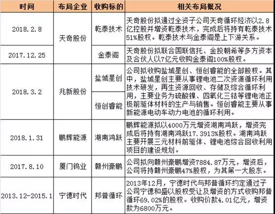 除了邦普循環(huán)、贛州豪鵬兩大回收領(lǐng)軍企業(yè)相繼被寧德時(shí)代、廈門鎢業(yè)控股后。近期,鵬輝能源、兆新股份、天奇股份都擬通過(guò)資本市場(chǎng)將湖南鴻躍、鹽城星創(chuàng)、恒創(chuàng)睿能、金泰閣、乾泰技術(shù)等第三方電池回收企業(yè)收入囊中。