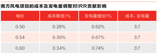 針對(duì)北方風(fēng)電場(chǎng)和南方風(fēng)電場(chǎng)的不同特點(diǎn),曹志剛給出了具體的破局路徑:北方項(xiàng)目應(yīng)以降本為主,“通過擴(kuò)大項(xiàng)目規(guī)模,共用升壓站、接入送出系統(tǒng)、場(chǎng)內(nèi)道路等來(lái)拉低項(xiàng)目初始投資。”南方項(xiàng)目應(yīng)以提高發(fā)電量為主,“在目前電價(jià)情況下,成本降低1%對(duì)IRR影響約0.25%~0.34%,發(fā)電量增加1%對(duì)IRR影響約0.58%~0.74%,成本與發(fā)電量對(duì)IRR的貢獻(xiàn)影響比約為3:7?!?