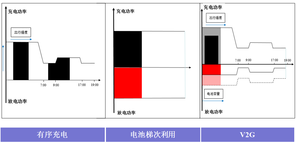 第三,電動(dòng)汽車與電網(wǎng)模式及互動(dòng)的效果。這是一個(gè)宏觀的總體的分析,實(shí)際的互動(dòng)效果還取決于電動(dòng)汽車本身用戶是否能夠跟隨電網(wǎng)的調(diào)度指令以及是否有這個(gè)積極性響應(yīng),因此我們具體分析中還是針對(duì)一個(gè)案例,就是京津塘案例做了一個(gè)具體的案例分析,包括三種電動(dòng)汽車的互動(dòng)模式,有序充電,單純的一種充電的引導(dǎo)的方式,改變它的充電時(shí)間。第二類,電池的梯次利用,退役之后電池還是存在很大的儲(chǔ)能效果,同時(shí)可以實(shí)現(xiàn)充電和放電雙向的調(diào)節(jié)能力。最后就是V2G,實(shí)際上是有序充電和電池梯次利用的結(jié)合,比如它的充電需求和放電的量實(shí)際上之差就是車輛滿足道路出行用能的需求。結(jié)合這三方面的協(xié)同分析之后,我們還是采用了電動(dòng)汽車這樣的互動(dòng)模型,REEV模型,來看互動(dòng)效果。