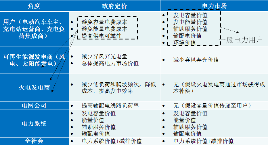 這張圖就是各個(gè)利益相關(guān)方買單關(guān)系的梳理,包括用戶、可再生能源發(fā)電商、火電發(fā)電商、電網(wǎng)公司等等,電動(dòng)汽車所產(chǎn)生的價(jià)值,分別可以通過減少棄風(fēng)棄光來減少火電廠發(fā)電的燃料消耗,包括減少電網(wǎng)公司線損等等,分別被不同的利益主體獲取。