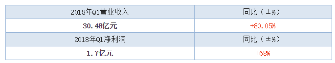 4月26日,格林美(002340)發(fā)布2018年一季報,公司2018年1-3月實現(xiàn)營業(yè)收入30.48億元,同比增長80.05%;新材料行業(yè)平均營業(yè)收入增長率為39.05%;歸屬于上市公司股東的凈利潤1.71億元,同比增長68.31%,公司每股收益為0.04元。公司表示,2018年第一季度,公司產(chǎn)能進(jìn)一步增加并釋放,銷量增加,使得公司業(yè)績穩(wěn)步增長。