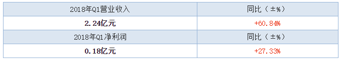 天力鋰能2018一季度營業(yè)收入2.24億元,同比增長60.84%;歸屬于掛牌公司股東的凈利潤為1764萬元,同比增長27.33%。