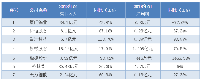 當(dāng)升科技發(fā)布2018年第一季度報告稱,公司一季度營業(yè)收入為67,093.45萬元,同比增長113.76%,公司動力鋰電正極材料銷量同比大幅增長,且因受原材料市場變化影響,公司產(chǎn)品單位售價同比大幅增長。
