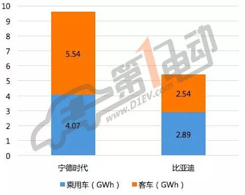 2017年寧德時(shí)代和比亞迪動(dòng)力電池供應(yīng)量對比(未包含專用車)
