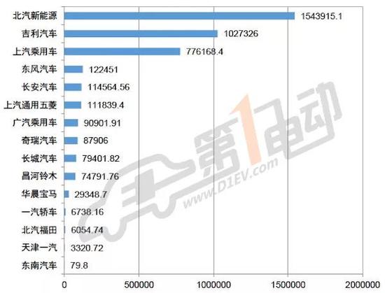 2017年寧德時(shí)代新能源乘用車電池供應(yīng)格局(KWh)