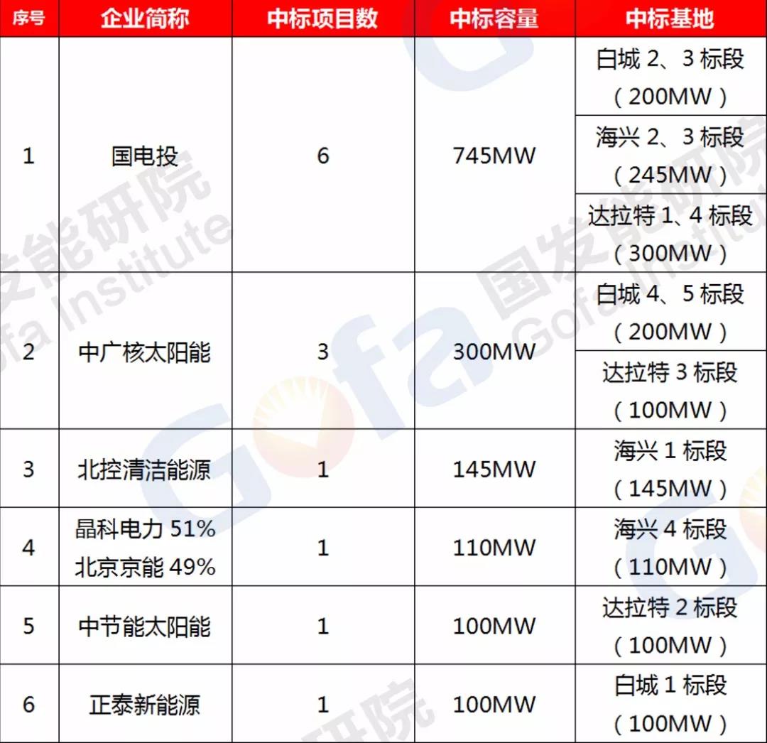 截止目前,國(guó)電投在白城、達(dá)拉特和海興三個(gè)應(yīng)用領(lǐng)跑基地都分別中標(biāo)兩個(gè)項(xiàng)目,以最大中標(biāo)容量領(lǐng)跑所有企業(yè)。其次中廣核太陽能共中標(biāo)3個(gè)項(xiàng)目,中標(biāo)容量300MW。預(yù)計(jì)上述兩家企業(yè)還會(huì)在即將公布的幾個(gè)基地中繼續(xù)拿下較多項(xiàng)目。