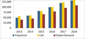 太陽能產(chǎn)業(yè)內(nèi)的年需求量水平將比第三方觀察機構(gòu)和各領(lǐng)先零部件供應(yīng)商所預(yù)計的更早地達到100GW。在2018年,太陽能產(chǎn)業(yè)將實現(xiàn)100GW以上太陽能組件出貨量,同時在2017年,這一數(shù)字將輕而易舉地超過90GW。