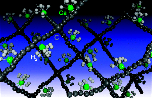 加上鈣就不是這樣。它使晶格在吸收氫時,鍵能(binding energy)會有利于有效的室溫可逆儲存。由于鈣原子不成串,它們的分布就會沿著碳炔鏈進行,就像葡萄結(jié)在藤蔓上,而且每個鈣原子會結(jié)合多達6個氫原子;這會賦予這一網(wǎng)絡一種潛在的存儲容量,大約相當于8%的自身重量。