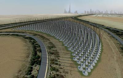 設(shè)計(jì)師計(jì)劃將這一風(fēng)力設(shè)計(jì)應(yīng)用于馬斯達(dá)爾城,這是在阿拉伯酋長國首都阿布扎比市郊區(qū)建造的一個(gè)2.3平方英里,沒有汽車的區(qū)域。據(jù)悉,Atelier DNA設(shè)計(jì)公司的“風(fēng)力莖桿”獲得了大地藝術(shù)發(fā)電機(jī)設(shè)計(jì)競賽第二名,這項(xiàng)設(shè)計(jì)大賽旨在遵循國際條款規(guī)定為馬斯達(dá)爾城設(shè)計(jì)最好的發(fā)電方式產(chǎn)生再生能源。