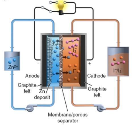液流結(jié)構(gòu)鋅碘電池工作原理圖