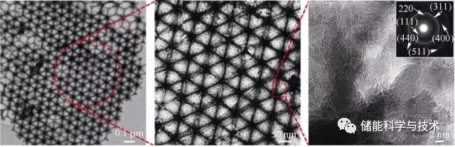 圖2 3DOM Co3O4的TEM圖及可充電鋅空電池充放電性能及循環(huán)穩(wěn)定性