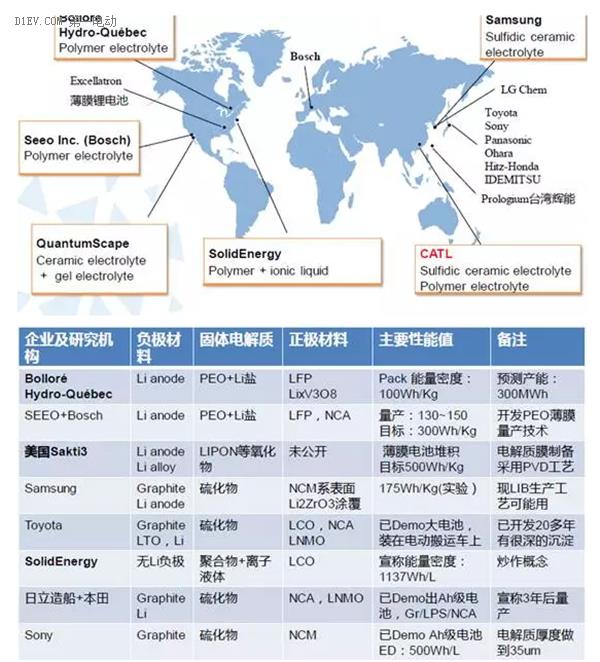 全球全固態(tài)電池企業(yè)研發(fā)的分布圖