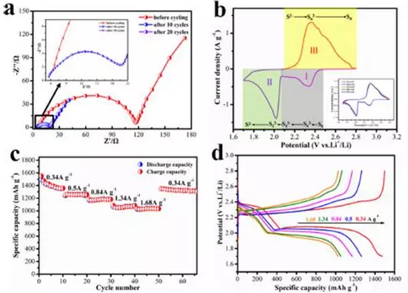 圖2全石墨烯硫正極電池的電化學(xué)性能。