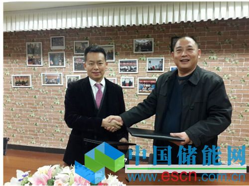 圖為福瑞至控股有限公司董事長(zhǎng)(左)與秦唐新能源科技有限公司董事長(zhǎng)秦磊(右)