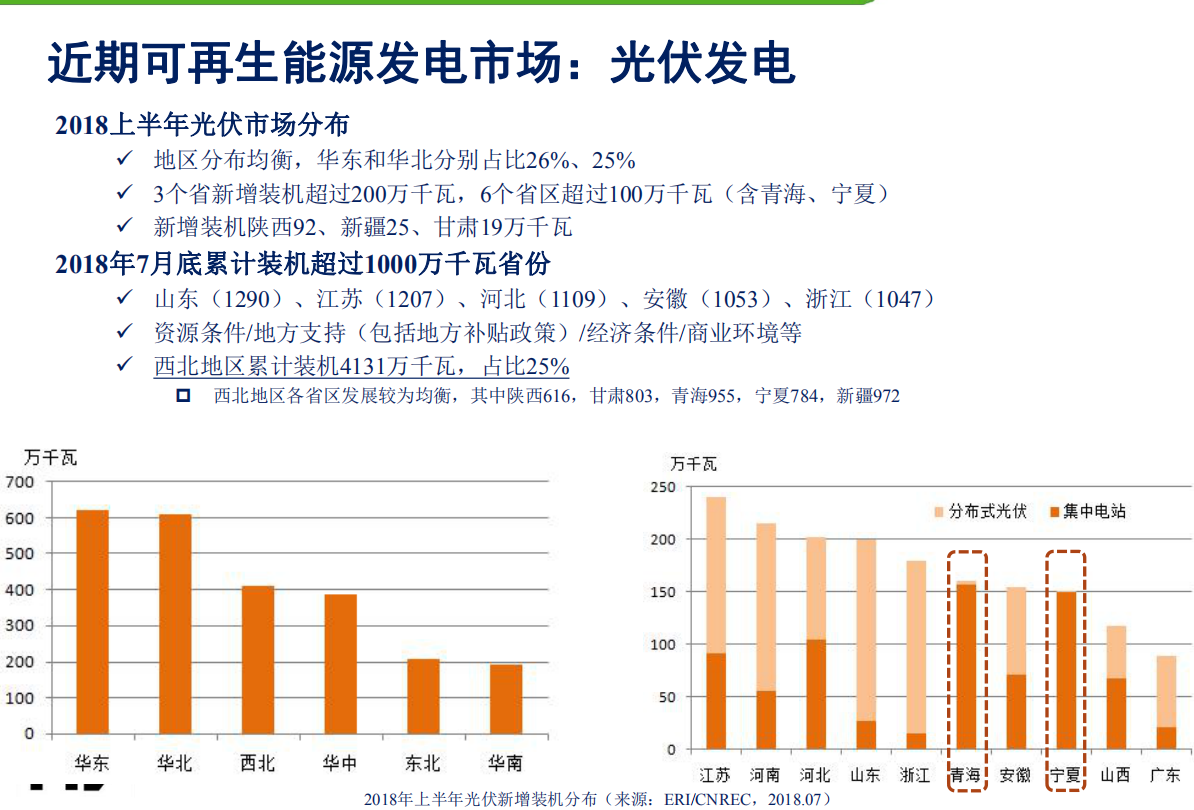 從新增裝機(jī)的地區(qū)分布來看,上半年光伏發(fā)電的地區(qū)分布比較均衡,華東和華北分別各占四分之一,全國有五個省份累計裝機(jī)超過了1000萬千瓦,西北地區(qū)累計裝機(jī)超過了,五個省區(qū)超過了4000萬千瓦,但發(fā)展比較均衡,除了陜西以外幾乎都是接近1000萬千瓦的水平。總的占比西北差不多占了四分之一。儲熱、聯(lián)合或耦合互補(bǔ)發(fā)電是其優(yōu)勢,尚需要在產(chǎn)業(yè)鏈建設(shè)、電站規(guī)?;⒔档统杀痉矫嬉掷m(xù)推進(jìn)。光熱發(fā)電的起步和成長階段比風(fēng)電和光伏分別晚10年到5年的時間,所以需要在產(chǎn)業(yè)鏈的建設(shè)、規(guī)?;?、降成本方面持續(xù)的推進(jìn)。目前我們在青海德令哈和甘肅敦煌一期各一萬千瓦的電站,國家首批示范項目20個,今年年初其中有4個選擇退出,還剩16個首批光熱示范項目,總裝機(jī)能夠超過100萬千瓦,預(yù)計今年年底有望投運達(dá)到4個和5個,青海項目進(jìn)展是相對比較快的。