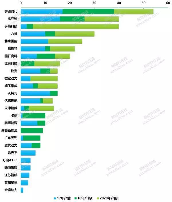 其中寧德時代規(guī)劃在2020年達(dá)到54GWh,比亞迪和孚能科技均規(guī)劃達(dá)到40GWh。