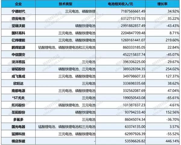 根據(jù)各上市公司披露的數(shù)據(jù),大部分公司的鋰電池業(yè)務(wù)營收都用一定程度的增長。最高增長率達(dá)到446.14%。
