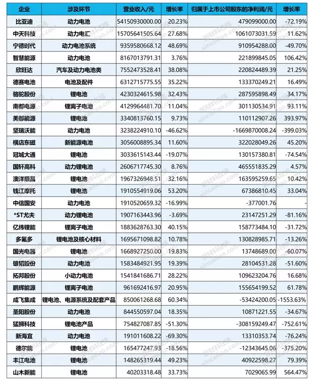 3、鋰電池上市公司普遍營收增長,凈利潤下滑