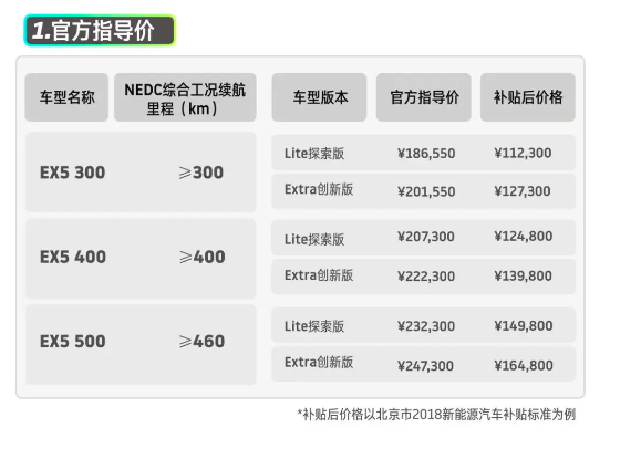 9月10日,威馬正式對外公布旗下EX5量產車型售價區(qū)間---18.655萬元~24.73萬元。以北京地區(qū)為例, 按照2018年國家新能源汽車補貼政策以及地方補貼政策,補貼后威馬EX5售價為11.23萬~16.48萬元。