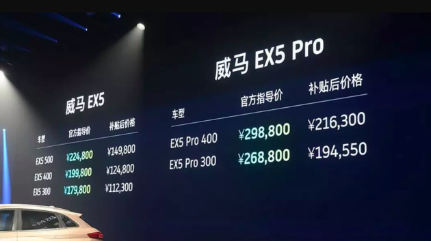 但有疑問的是,即便按照國家補貼來算,威馬EX5的補貼后售價也與實際公布的補貼后售價不一致。以威馬400車型為例,按照有地補的北京地區(qū)市場價格推算,補貼后售價應該是11.655萬元,但威馬實際公布的補貼后售價是12.48萬元,兩者之間相差了8250元。