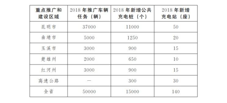 在新能源汽車(chē)推廣方面,云南省將重點(diǎn)圍繞私人購(gòu)車(chē)、政府采購(gòu)、公共出行、城市物流(含郵政,下同)以及旅游等領(lǐng)域,在昆明市、曲靖市、玉溪市、楚雄州、紅河州等滇中城市群和重點(diǎn)旅游城市及景區(qū),2018年推廣5萬(wàn)輛新能源汽車(chē)。其他州、市不下達(dá)推廣任務(wù),由州、市人民政府結(jié)合實(shí)際積極推廣新能源汽車(chē)。