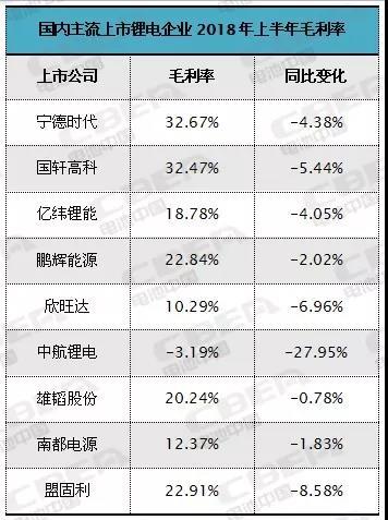 動力電池產業(yè)毛利率普遍下滑