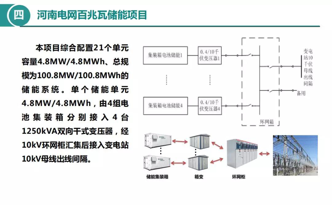 科技項目《多點布局分布式儲能系統(tǒng)在電網(wǎng)的聚合效應研究及應用示范》,參與電力系統(tǒng)的輔助服務、輸配電應用、促進可再生能源的消納,通過商業(yè)模式創(chuàng)新,提高大規(guī)模儲能在電網(wǎng)側的應用能力。項目我們選了9個地市16個變電站,在原有變電站的基礎上升級改造后節(jié)約了一部分土地,在節(jié)約的土地上我們布局了100兆瓦的儲能系統(tǒng),采用了分布式布置、模塊化設計、標準化接入、集中式調(diào)控的技術方案進行實施。我們16個分布式儲能電站通過了儲能調(diào)控系統(tǒng)接入到河南省電力調(diào)度控制中心。因為現(xiàn)在站點和容量比較少,后續(xù)包括要接入穩(wěn)控系統(tǒng),近期也正在布局。