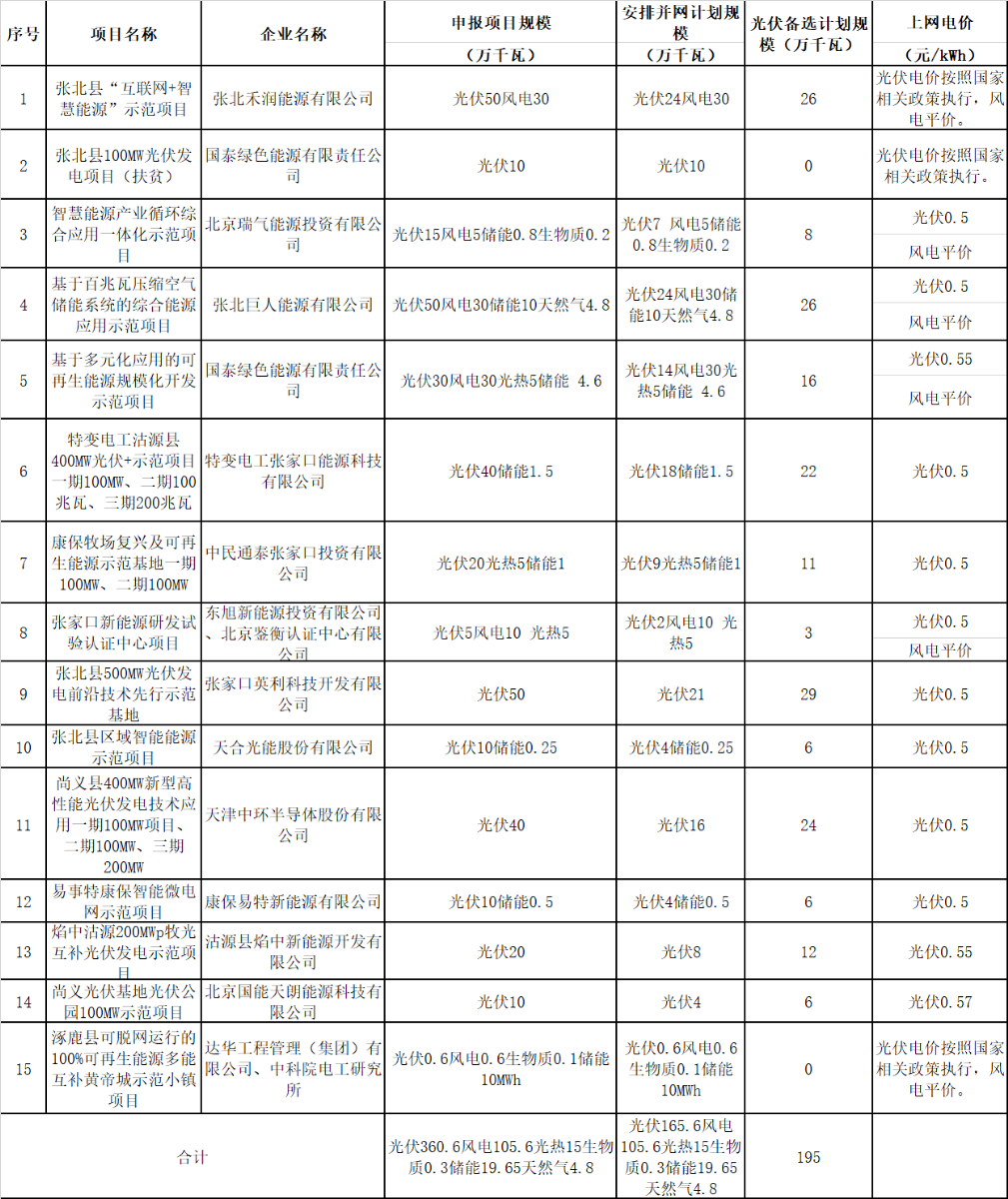3.列入備選計(jì)劃的規(guī)??赏⒕W(wǎng)計(jì)劃一并進(jìn)行備案,后視張家口示范區(qū)項(xiàng)目整體建設(shè)情況和電網(wǎng)接入條件相應(yīng)調(diào)整替補(bǔ)或安排到2020年后并網(wǎng)計(jì)劃。