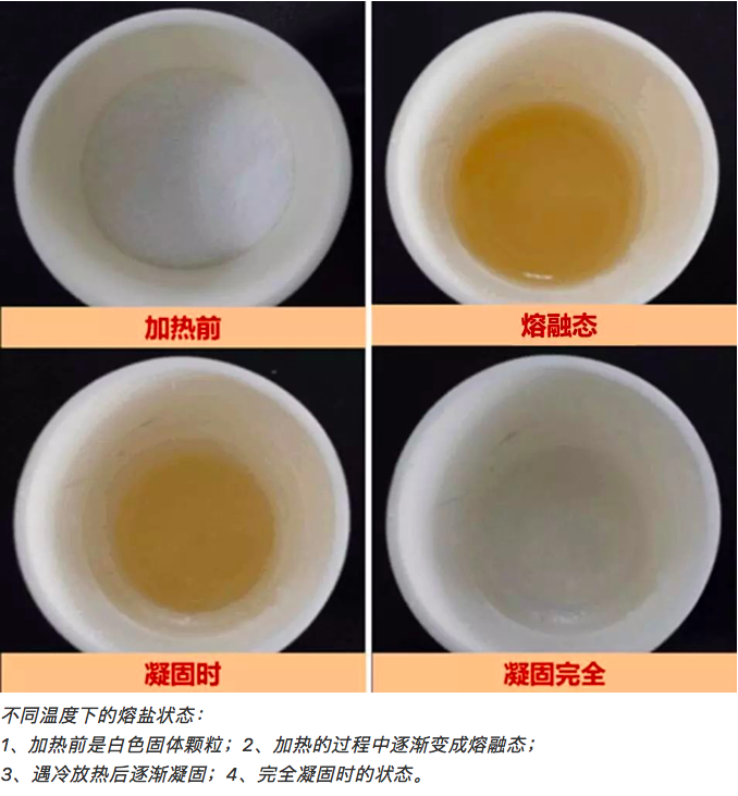 作為太陽能光熱發(fā)電的核心技術(shù),儲熱材料的選擇與制備尤為重要。熔鹽就是光熱發(fā)電儲能材料的首選。熔鹽,其實就是鹽的熔融態(tài)液體,它具有熱容大、粘度低、蒸汽壓低、寬溫等諸多獨特的性能優(yōu)勢。