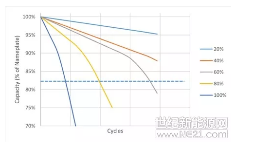 圖3.循環(huán)深度放電對電池容量保持率降低的影響