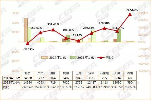 圖:2018年1-6月限購(gòu)地區(qū)純電動(dòng)乘用車上險(xiǎn)數(shù)據(jù)分析 單位:輛