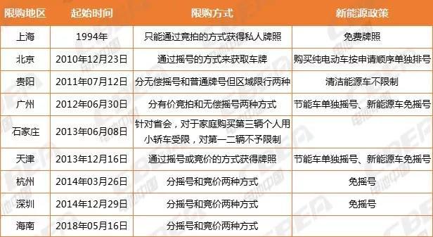 目前,我國(guó)汽車限購(gòu)的城市和省份有9個(gè),分別是北京、上海、廣州、石家莊、貴陽(yáng)、天津、杭州、深圳以及海南省,不僅燃油汽車限購(gòu),新能源汽車牌照也有指標(biāo)限制,以北京、上海、廣州等一線城市為代表的限購(gòu)城市,呈現(xiàn)出一牌難求的尷尬局面。下圖是梳理的以上限購(gòu)地區(qū)新能源汽車的限購(gòu)方式。