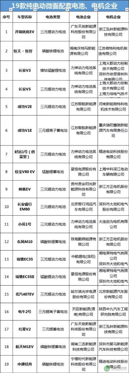 19款電動微面的電池由12家企業(yè)提供,其中4款由力神動力電池提供,2款由天勁新能源提供,2款由江蘇智航新能源提供,2款由星恒電源提供,其余9款有中航鋰電、寧德時代、鵬輝能源、三迅新能源、陽光新能源、光宇電源、天臣新能源、沃特瑪新能源,智行鴻遠(yuǎn)汽車等提供。