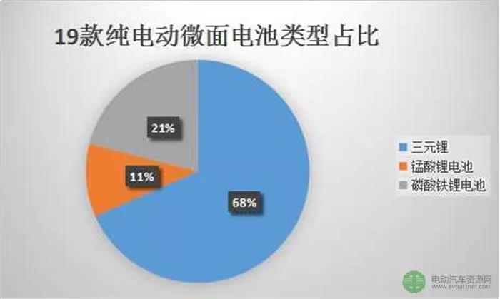 19款電動微面車型中,電池的類型有3種:磷酸鐵鋰電池、錳酸鋰電池、三元鋰電池。其中搭載三元鋰電池有13款車型,磷酸鐵鋰電池4款,錳酸鋰電池2款。由此可見,在電動微面中,三元電池備受車主青睞。