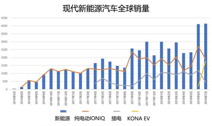 在實(shí)際的研發(fā)生產(chǎn)等資金投入后,現(xiàn)代汽車(chē)在新能源領(lǐng)域取得了不錯(cuò)的成績(jī),2018年7月現(xiàn)代汽車(chē)銷(xiāo)售新能源汽車(chē)4143臺(tái),1-7月份共銷(xiāo)售21665臺(tái)。